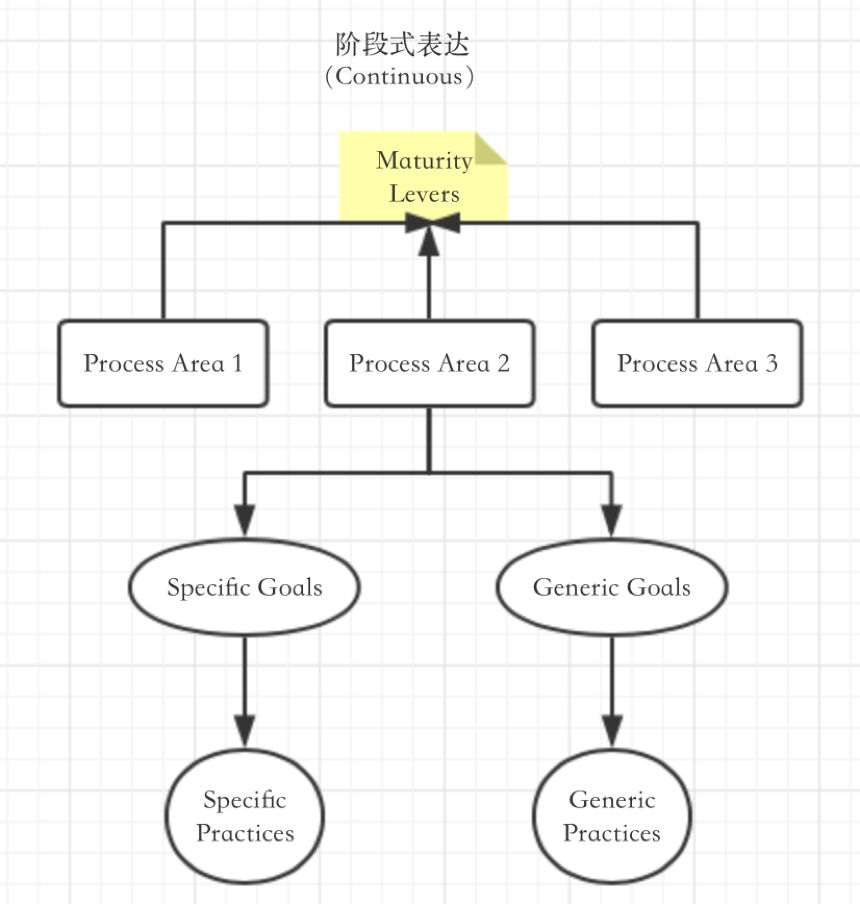 阶段式表达提供系统化结构化的方式,一次一个阶段达到以模型为基础的流程改善。达到每一个阶段可确保有足够的流程基础建设,可作为下一个阶段流程改善的基础。